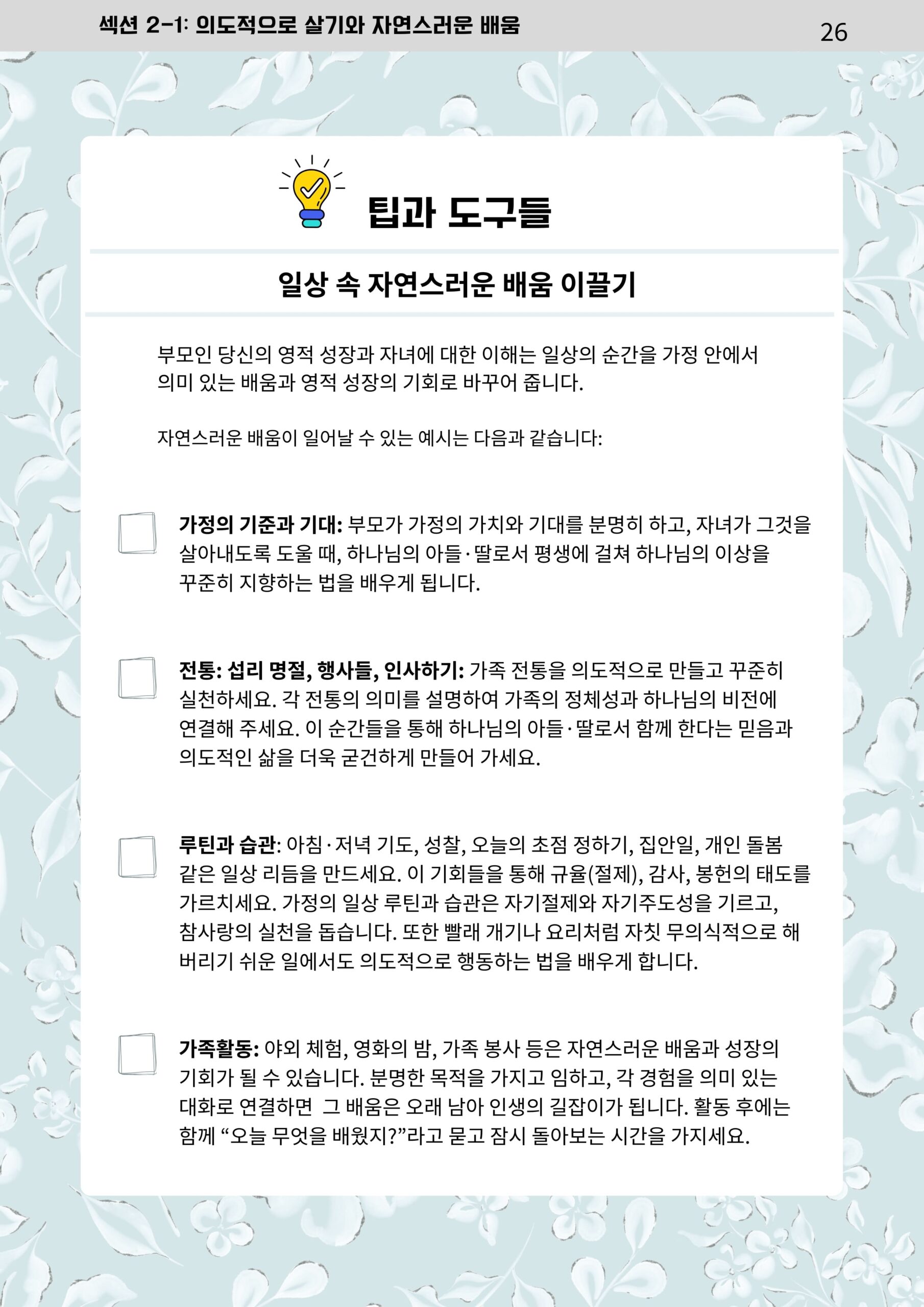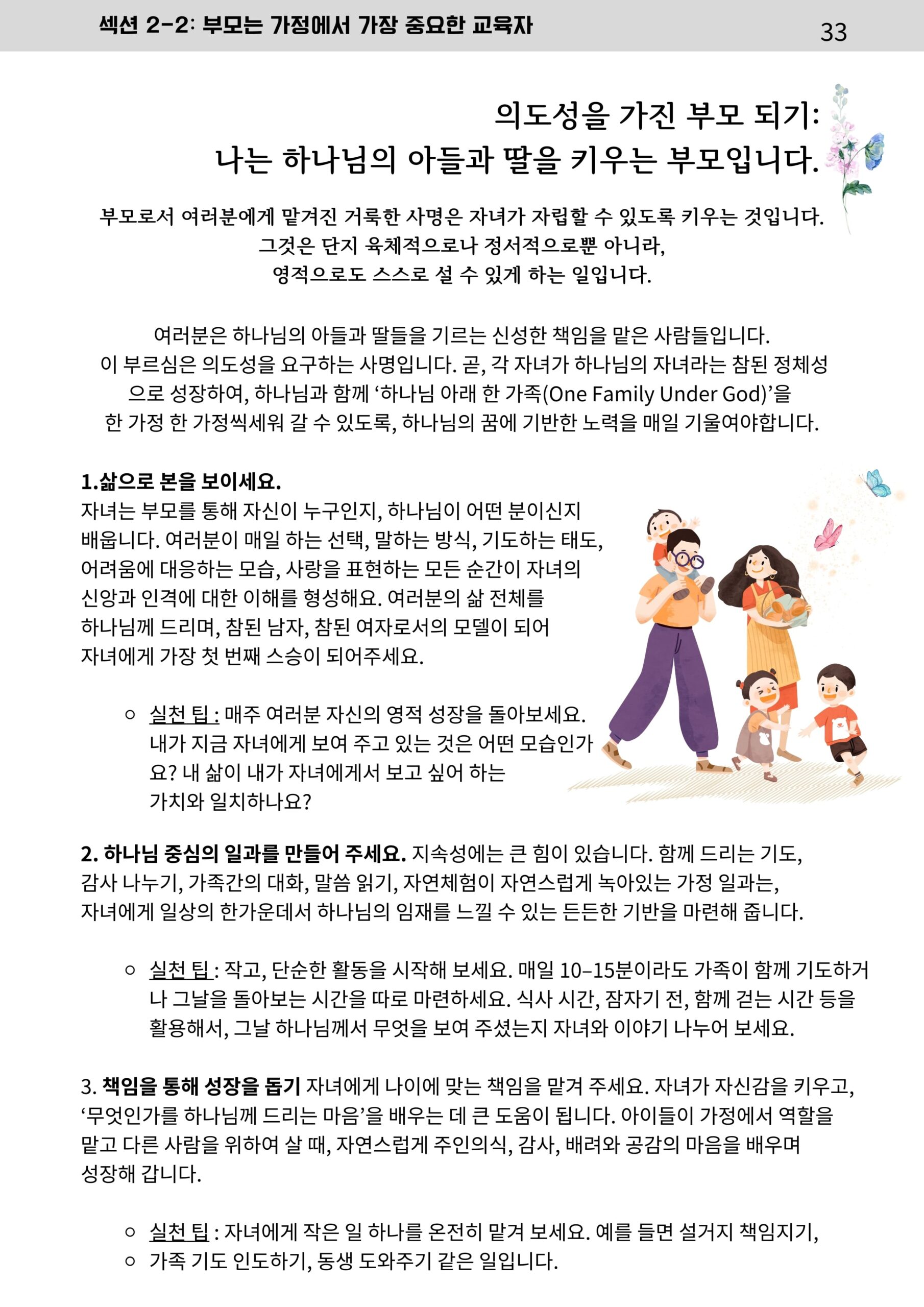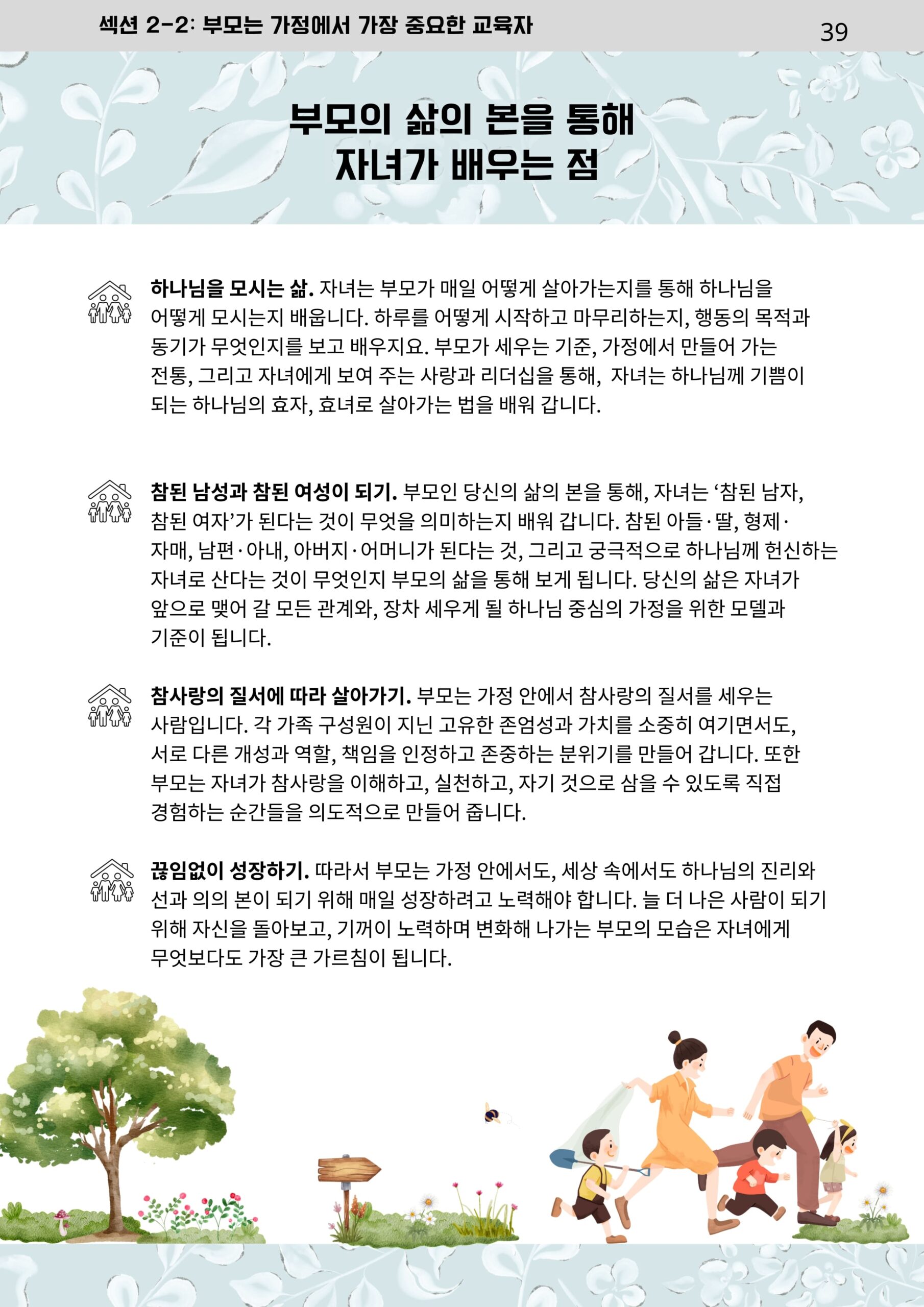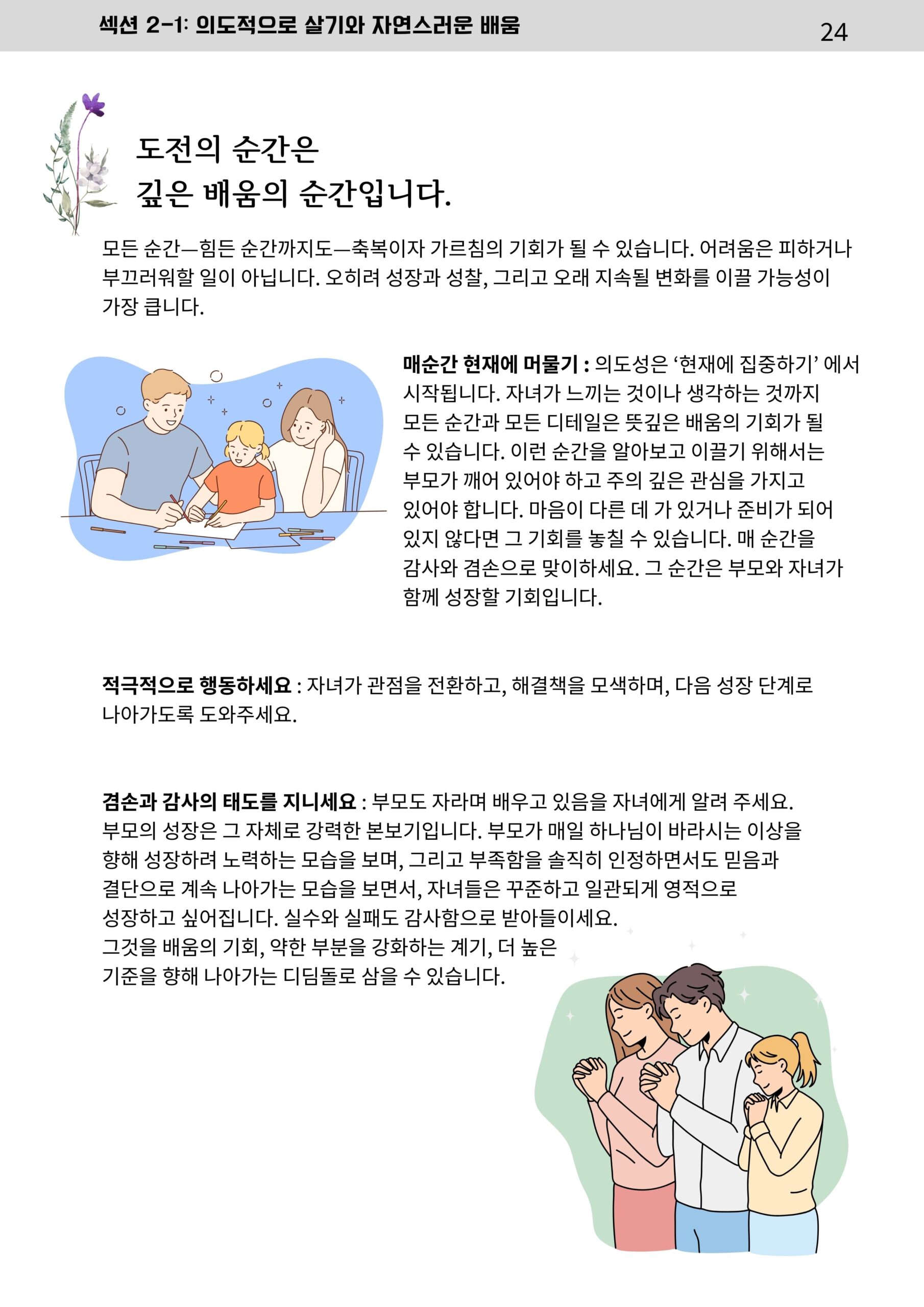 가정에서 이루어가는 매일의 가족 성장