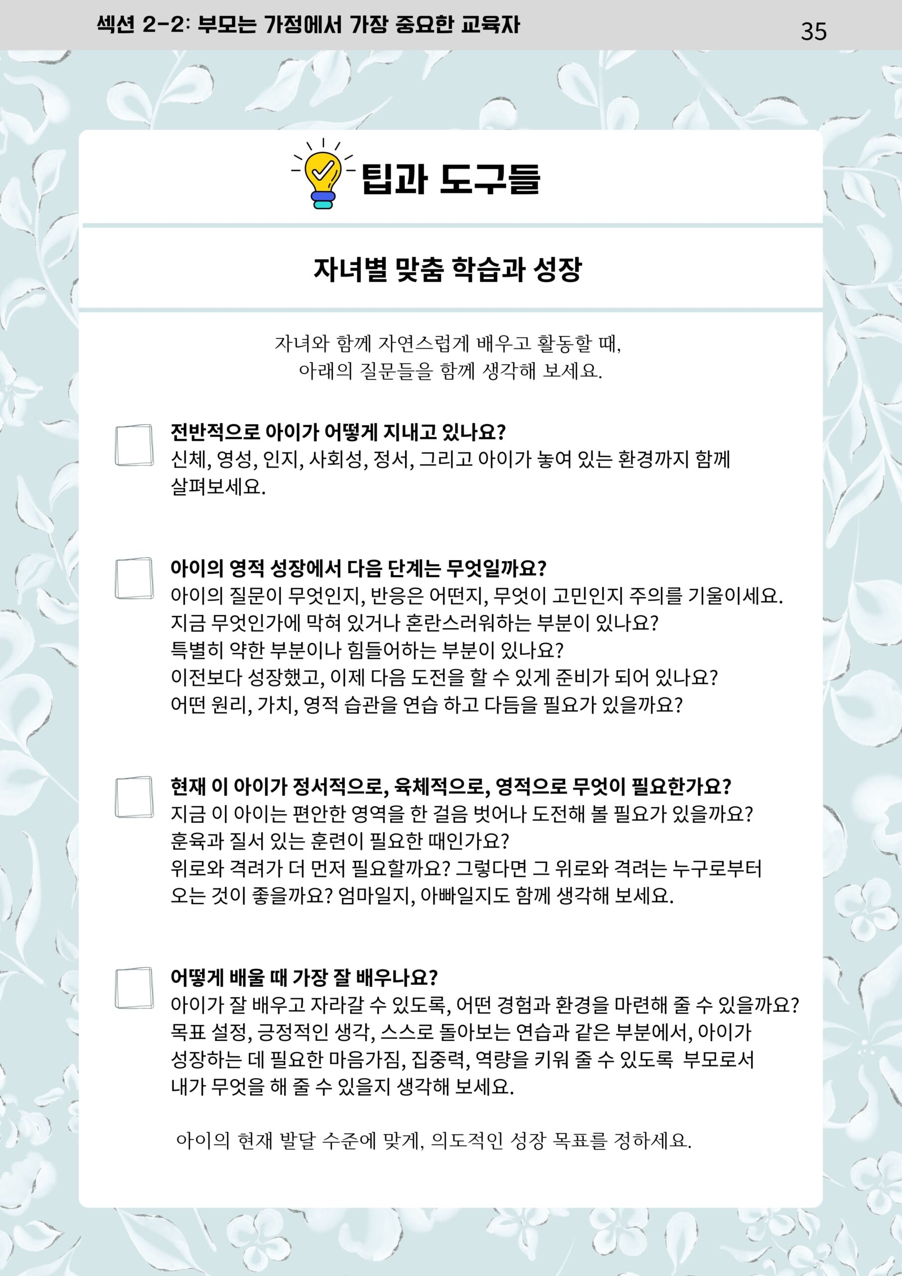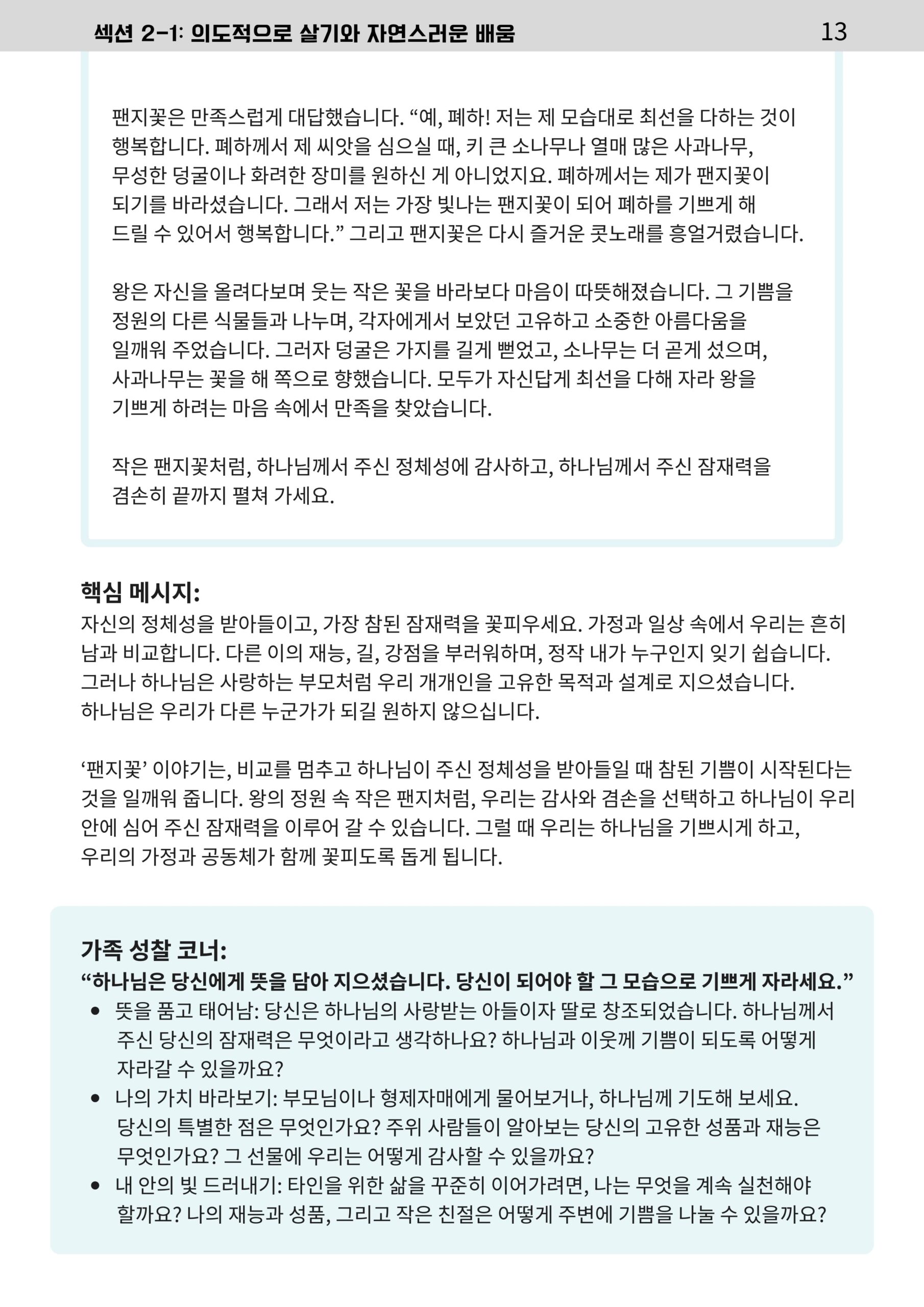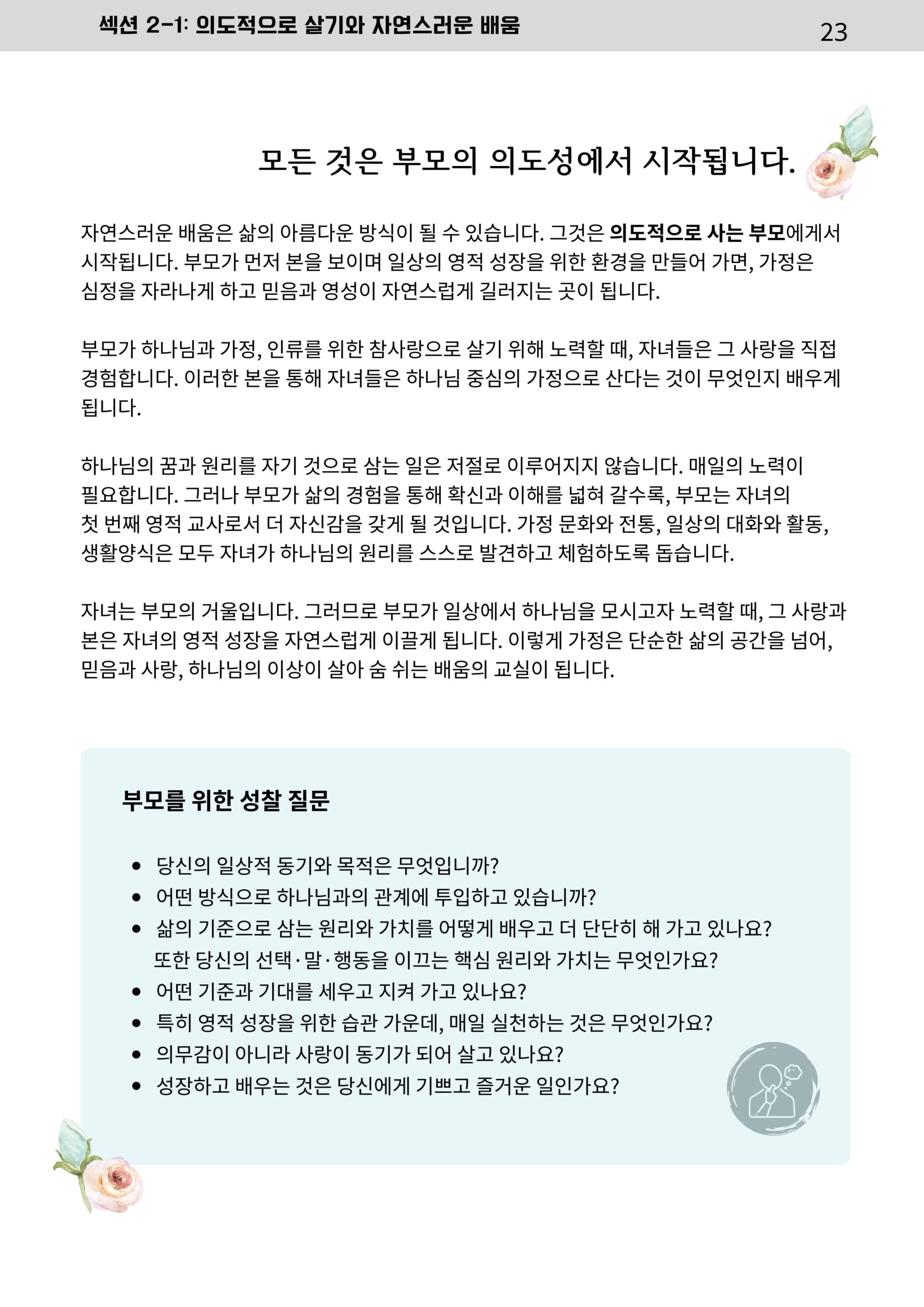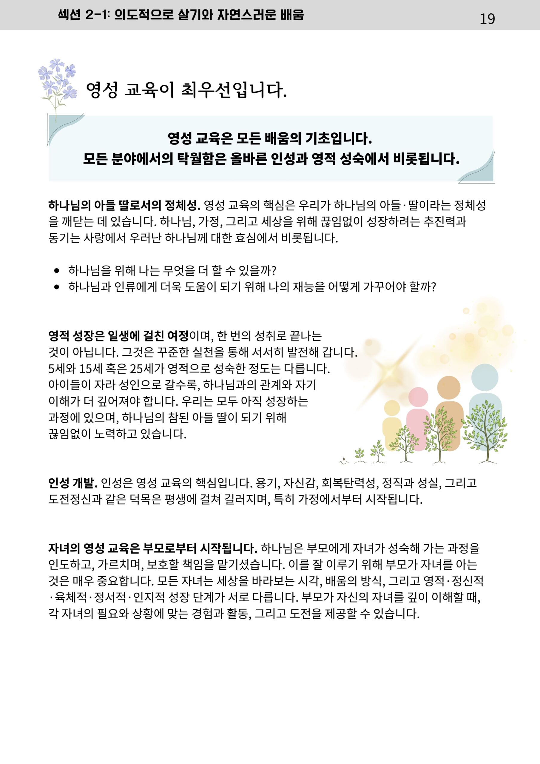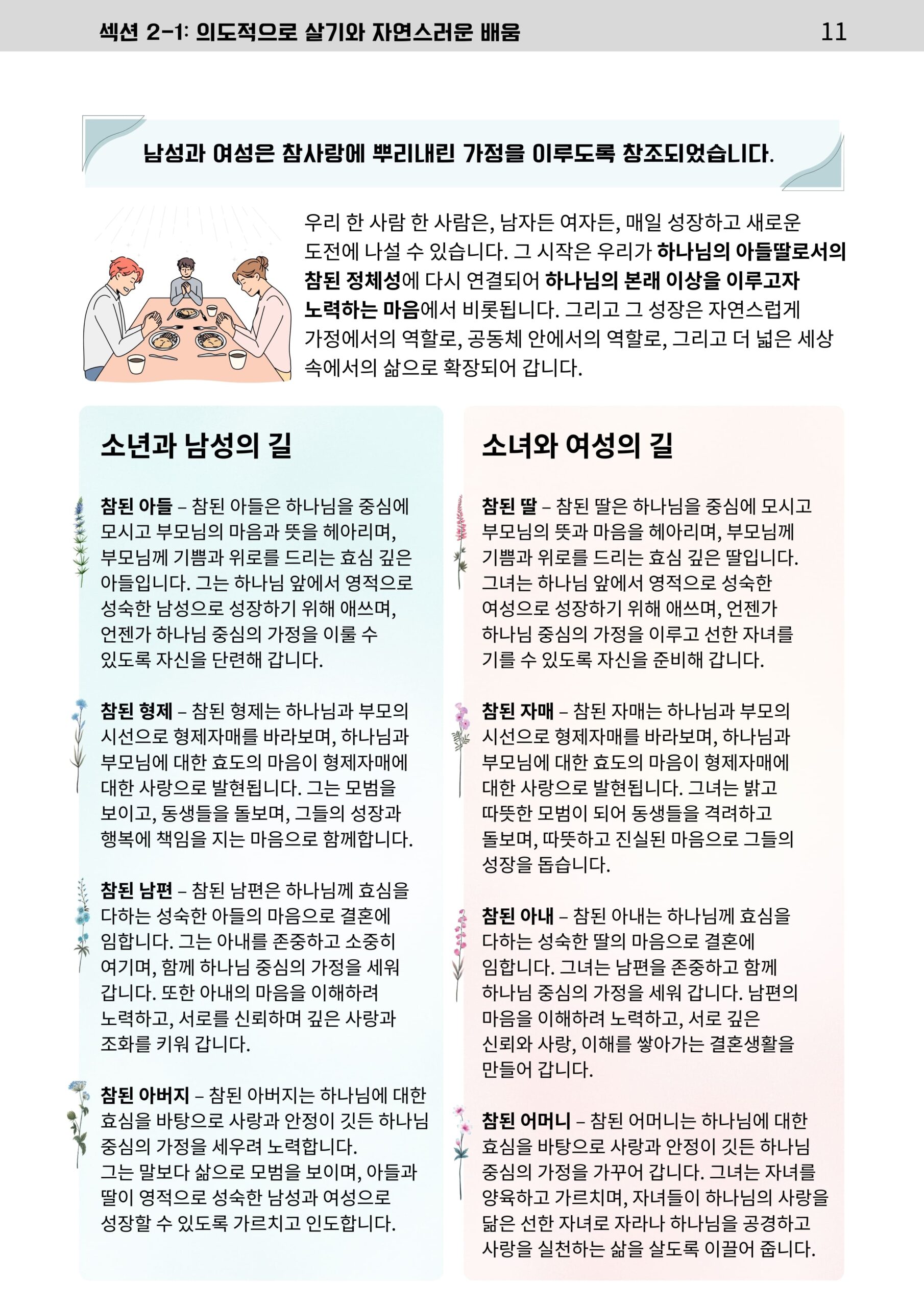 가정에서 이루어가는 매일의 가족 성장